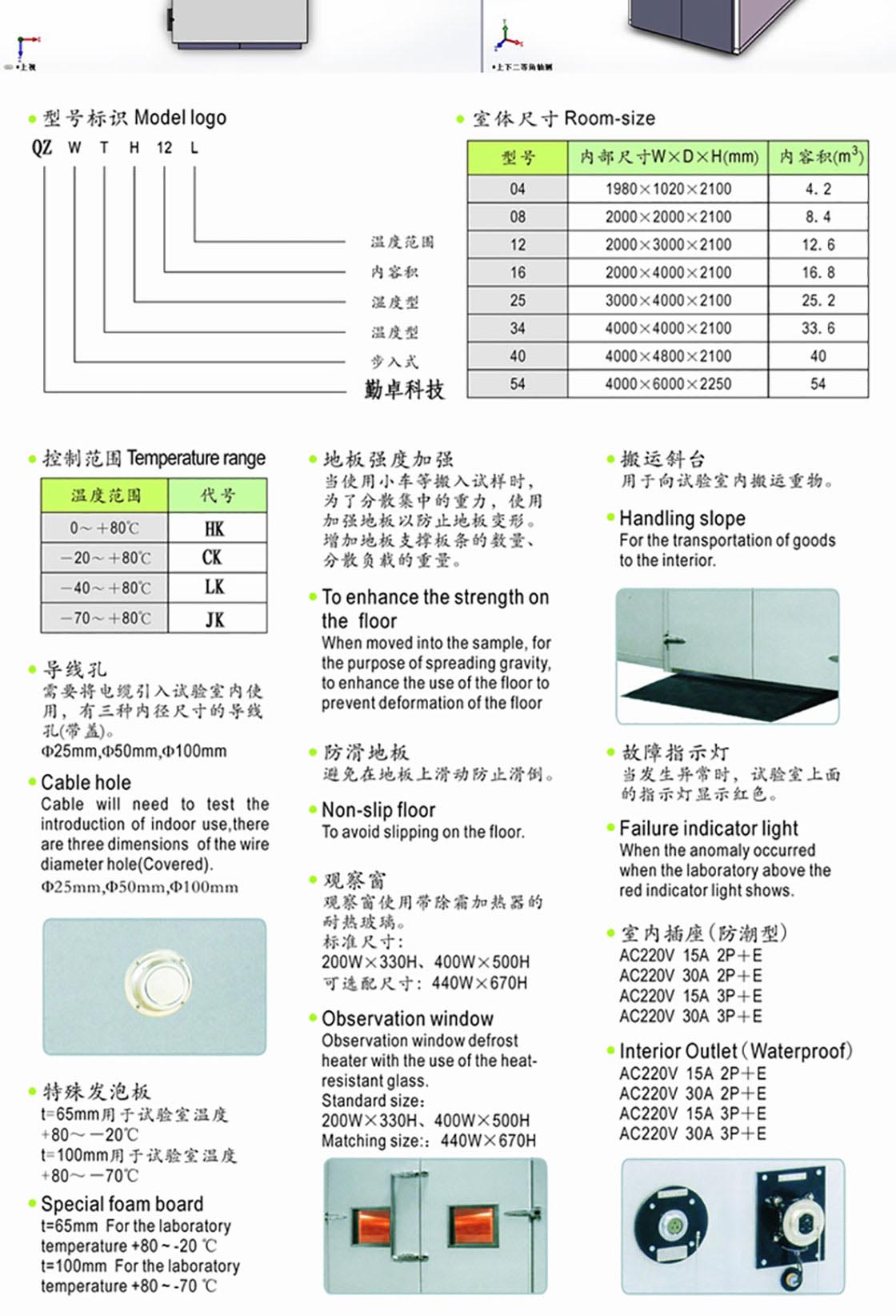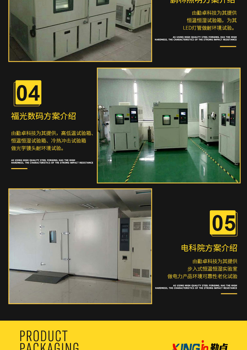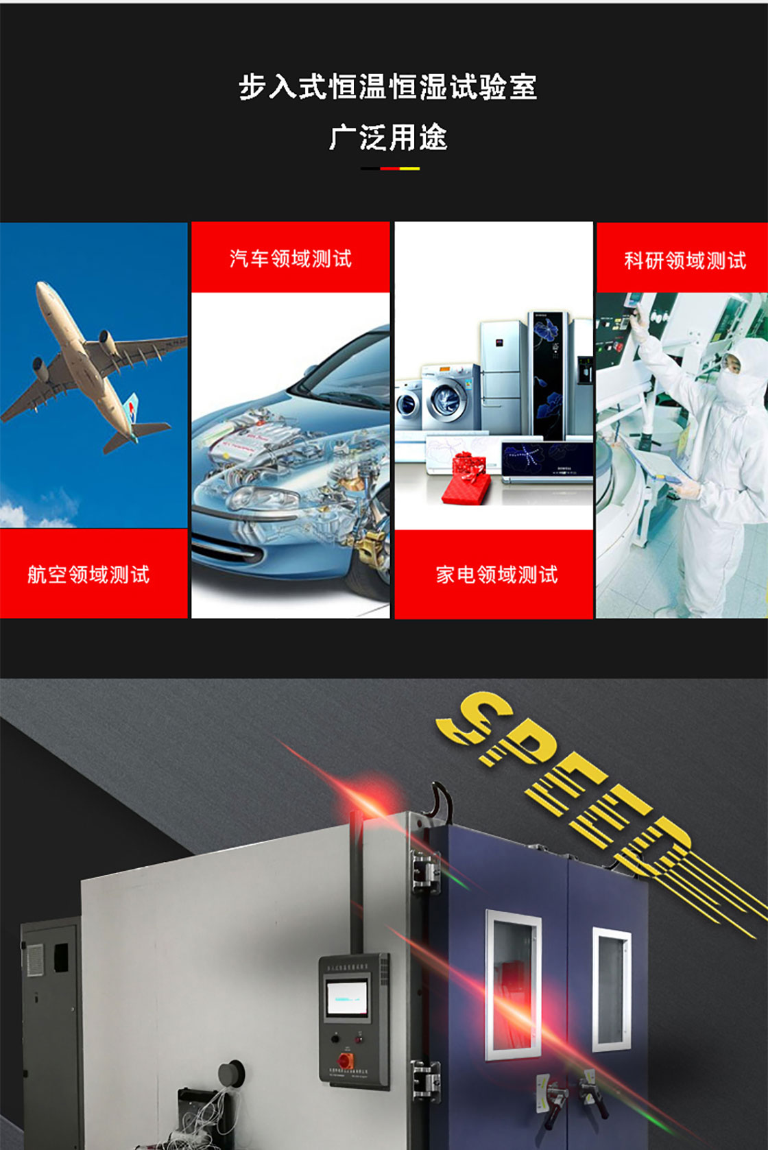 步入式試驗箱應用于國防工業(yè)、航天工業(yè)、自動化零組件汽車部件、電子電器件、塑膠、化工、制藥工業(yè)及相關產(chǎn)品之耐熱、耐寒測試,為產(chǎn)業(yè)界提供大型零件,半成品,成品之大型溫濕度測試環(huán)境空間,適合于測試產(chǎn)品量多、體積大之試驗設備。